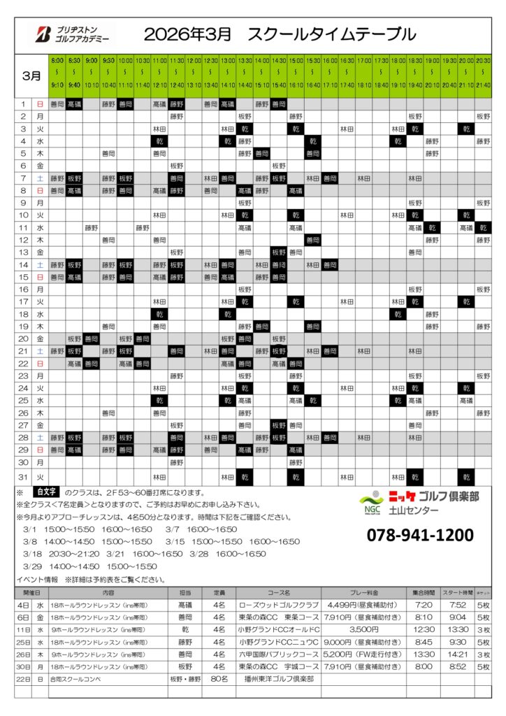 NEWS お知らせ 2026/02/21 お知らせ 3月スクールタイムテーブル 体験会随時受付中! ニッケゴルフ倶楽部一覧 土山センター一覧に戻る SNS CONTACT お問い合わせはこちら 当社へのご相談、ご依頼等ございましたら下記のフォームにてお気軽にお問い合わせください。 お問い合わせ